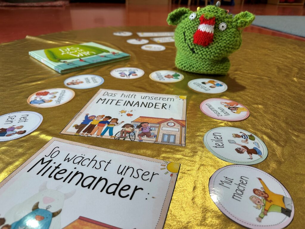 In der Regenbogengruppe ist ein neues Herzensprojekt gestartet: Gemeinsam mit den Kindern tauchen wir in die Welt des Bilderbuchs „Das kleine WIR“ von Daniela Kunkel ein. Dieses liebevoll gestaltete Buch begleitet Kinder dabei, zu entdecken, wie wichtig Gemeinschaft, Zusammenhalt und gegenseitige Wertschätzung sind – zentrale Werte, die auch unseren pädagogischen Alltag prägen.